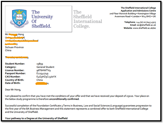 錄取學(xué)校:謝菲爾德大學(xué)