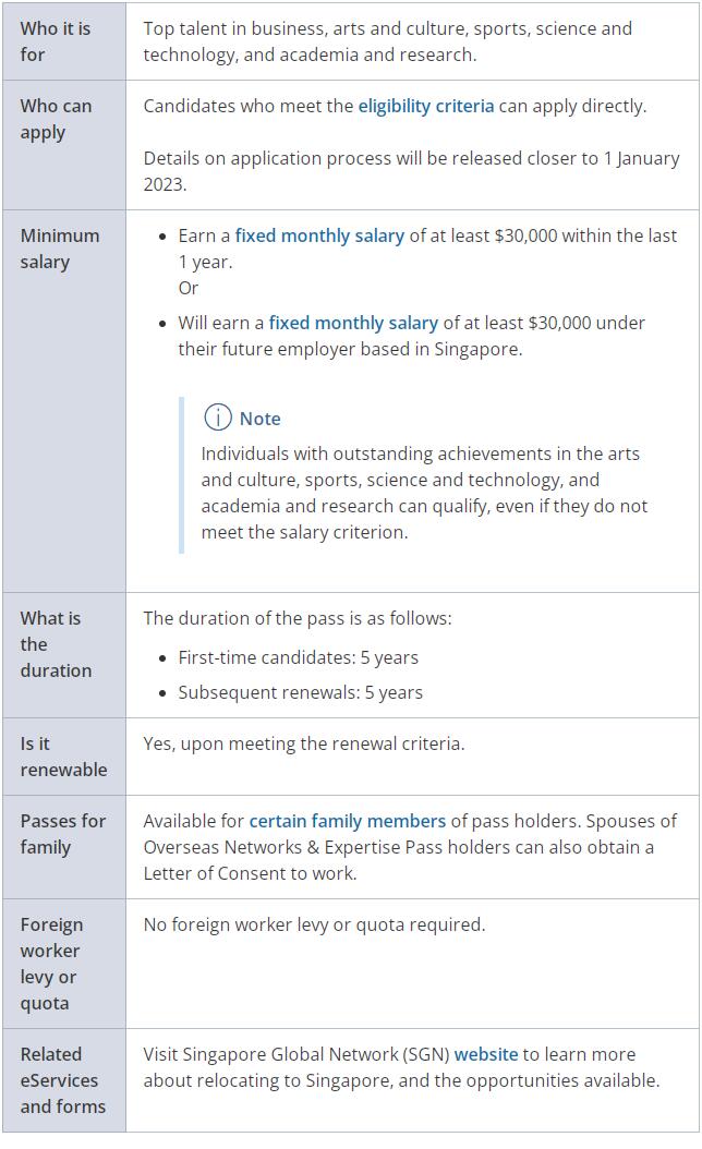 ONE Pass (全稱: Overseas Networks & Expertise Pass),指的是“海外專才",這類證件將讓高收入和高階人才能在還沒找到工作的情況下,在新加坡居留。具體申請流程將在2023年1月1日前公布。
